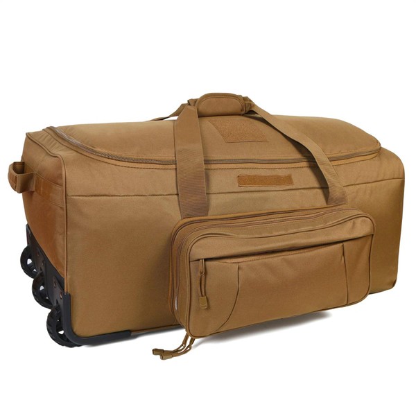 PAIWPHLI Military Wheeled Deployment Bag Tactical Heavy Duty Duffel Bag for Hiking Camping (Tan)