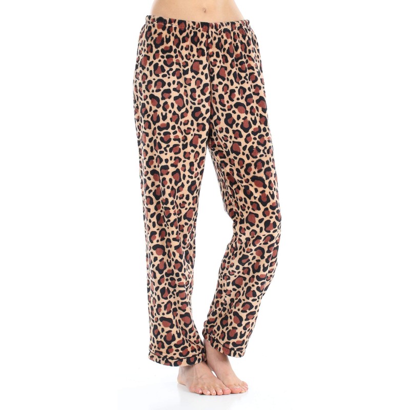 PajamaMania Women's Fleece Long Sleeve Pajama PJ Set, Brown Leopard, Large