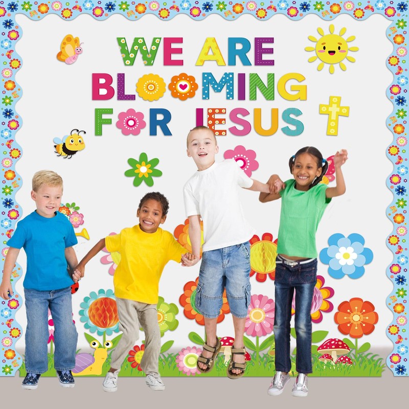 - Spring Religious Bulletin Board: our Jesus classroom bulletin boarders are designed in spring flower and Christian cross elements, with words [WE ARE BLOOMING FOR JESUS]; It is beneficial for children to cultivate artistic creativity and increase the fun of learning, bringing you a chic and spring Jesus classroom