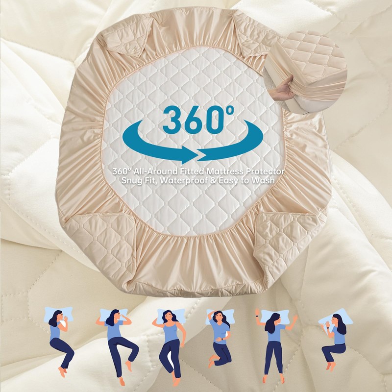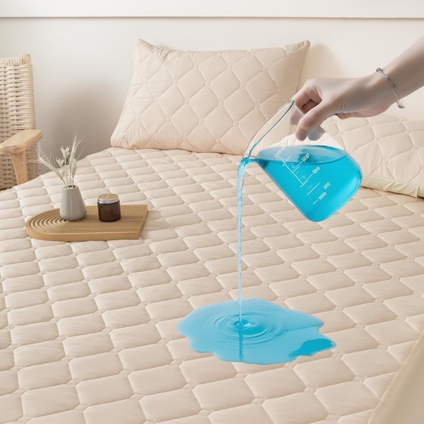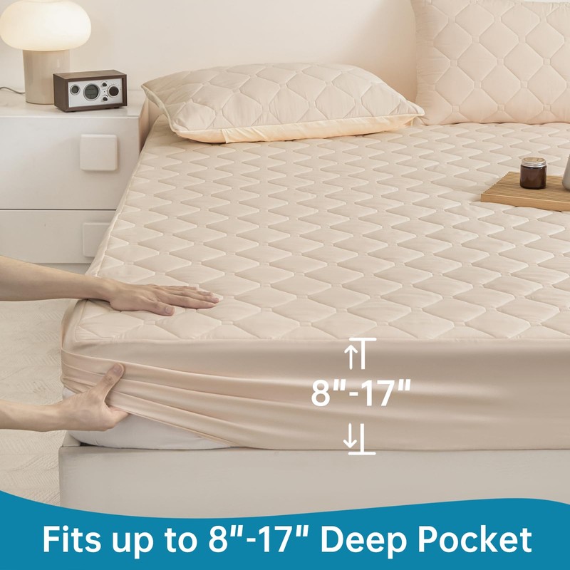 PAJEO Waterproof Mattress Protector Full Size, Quilted Bed Mattress Cover with 17" Deep Pocket – Bedding Soft Pad Machine Washable (1 Pcs Mattress Pad) (Khaki)