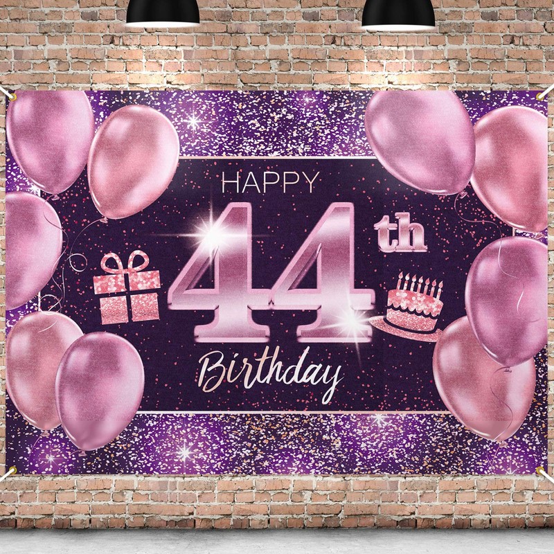 PAKBOOM Happy 44th Birthday Banner Backdrop - 44 Birthday Party Decorations Supplies for Women - Pink Purple Gold 4 x 6ft