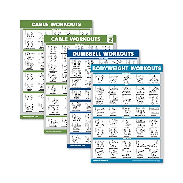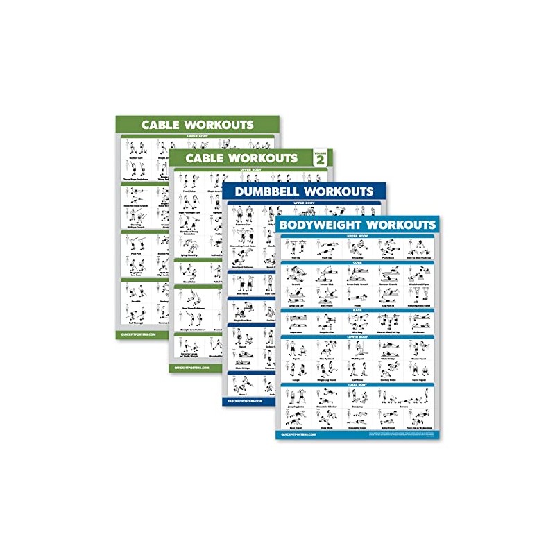 Palace Learning 4 Pack - Cable Machine Workout Posters Volume 1 & Volume 2 + Dumbbell Exercises + Bodyweight Exercises (LAMINATED, 18" x 24")
