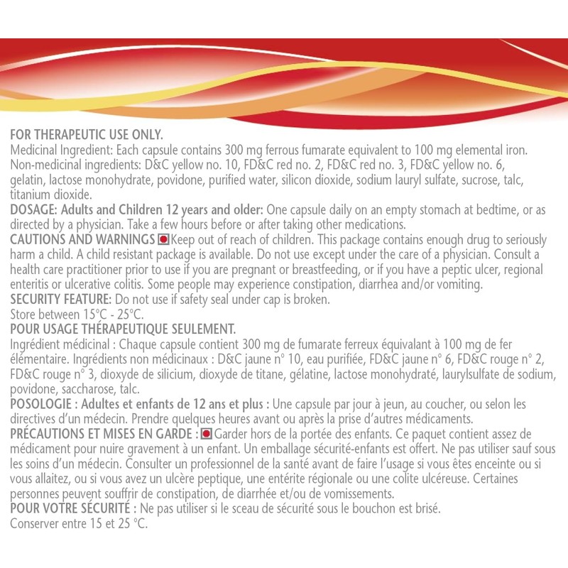 • Each capsule contains 300 mg ferrous fumarate, equivalent to 100 mg elemental iron