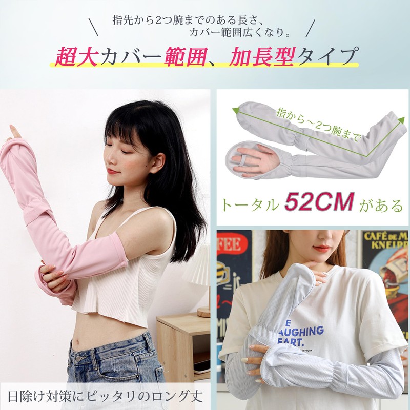 - (UV Protection and Cooling Sensation Arm Cover) Arm cover uses a cooling sensation fabric that allows you to feel cool to the touch at -4°F (-5°C). Provides instant cooling function. It has been proven by a laboratory's UV shielding rate, and is cut with the highest level of UPF 50+ in the industry and has over 99% of UV rays. Treated with UV absorbers that can absorb high energy UV rays and provide maximum protection from the sun's harmful damage. With a total of 20.5 inches (52 cm), you can protect your hands from sunburn from your fingertips to your arms