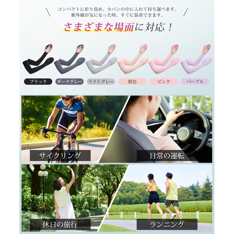 - (6 popular colors for easy summer) Available in 6 popular colors, including black, light gray, dark gray, skin color, pink, purple. This arm cover is thin, lightweight, and easy to carry, and is simple and easy to match. Suitable for various occasions. Great for car driving, cycling, touring, watching sports, golf, running, mountain climbing, outdoor sports, and daily use as UV protection. This arm cover is recommended for women who feel cold in the air conditioning