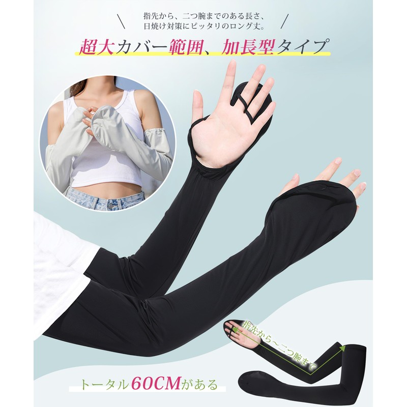 - (Excellent Design and UV Protection from Fingertips) This arm cover is designed for women with a large range of coverage from the fingertips of the hands to the arms, so even when wearing short sleeves can protect your hands from sunburn. Great for outdoor fun. In addition, the sleeve part has a finger design, so it will stay firmly in place and prevent it from slipping off even when you move it outdoors. It can also be used for bicycle or driving. The fingertips are free so you can operate your smartphone, but you can also use your computer or even use it by hand