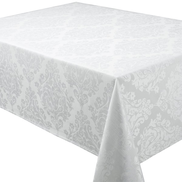 - Palazzo Damask Snow (White) Christmas Rectangular Tablecloth Ideal For 4-6 Place Settings (52x70in-132x178cm Approx)