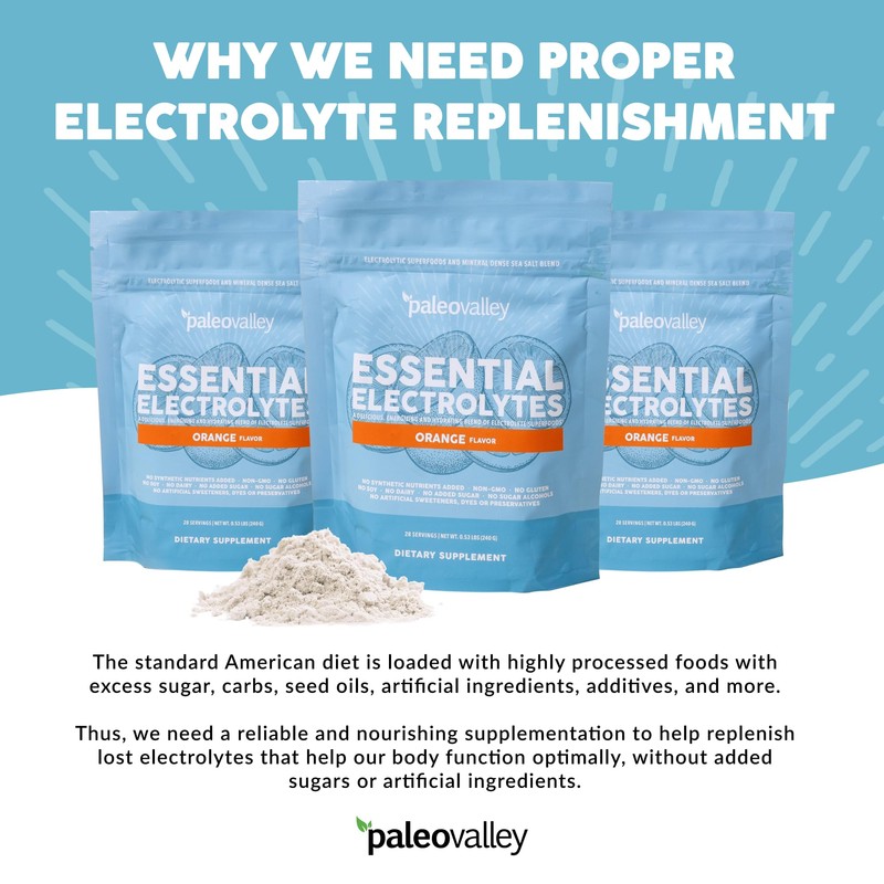 - Full Spectrum Hydration Powder: Boost your hydration levels and support optimal bodily function with Paleovalley Essential Electrolytes. This natural electrolyte powder contains 4 vital electrolytes: sodium, potassium, magnesium, and calcium, enhanced with over 60 trace minerals.