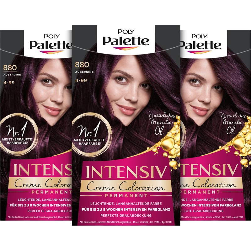 Palette Intensive Creme Colouration Hair Colour, 4-99/880, Aubergine, Level 3, 3 x 115 ml, Permanent Colour, for up to 8 Weeks of Intensive Colour Shine and 100% Grey Coverage