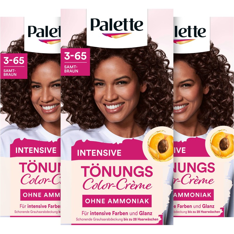 Palette Tint Cream 3-65 Velvet Brown (3 x 115 ml), Temporary Colouration without Ammonia for Gentle Grey Hair Coverage, Hair Colour for Gradual Washing, Lasts up to 28 Hair Washes