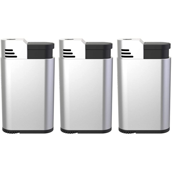 Palio Torcia Single Jet Flame Lighter, Refillable, Adjustable Torch Flame, Wind Resistant, Simple, Functional, Pocket Size, Durable Metal Body, Silver, Pack of 3