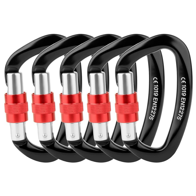 Paliston 25kN Kletterkarabiner Aluminium Schraubkarabiner D Form Karabiner Karabinerhaken Schwarz 3 Stück