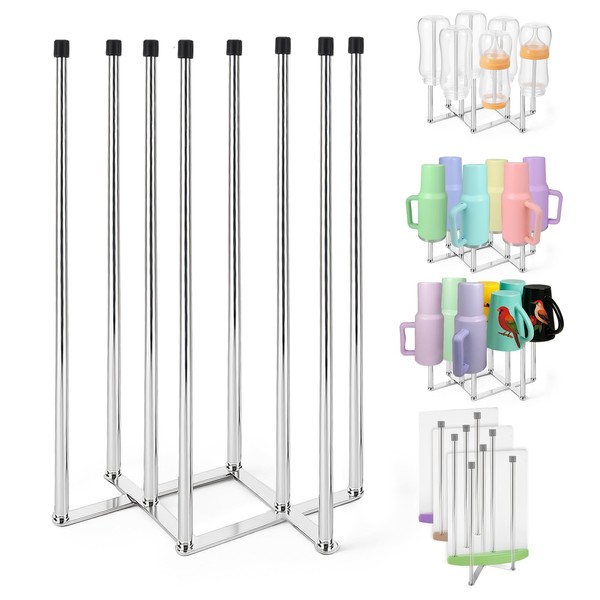 Palksky Foldable Bottle Drying Rack for Water Bottles & Cups - Stainless Steel Space Saving Dish Rack Holder Organizer for Kitchen Counter, Sink or Dishwasher