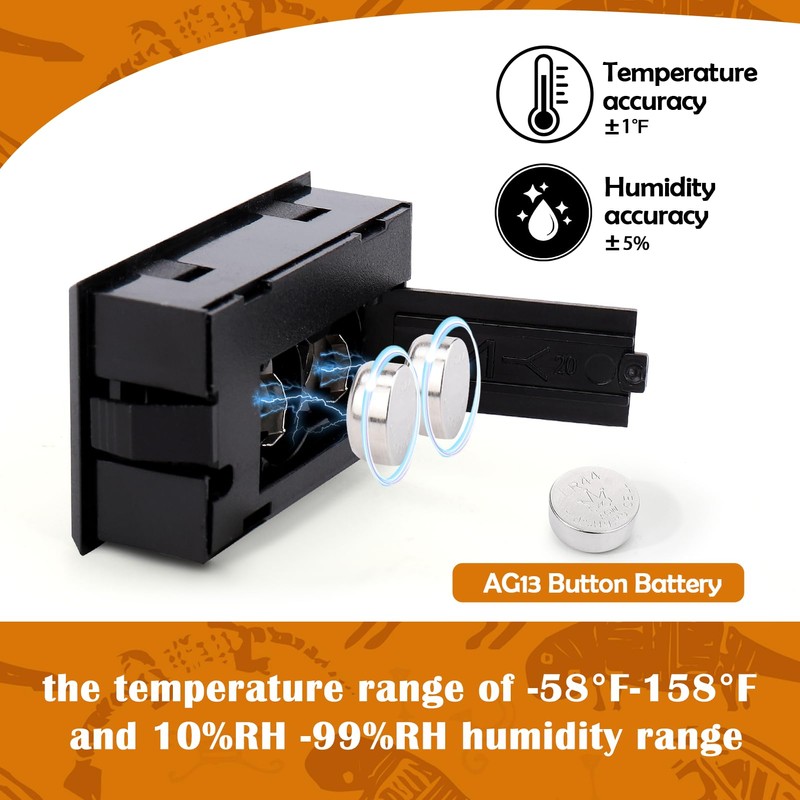 - High-precision measurement: Designed for accurate temperature and humidity readings, our thermometer uses an advanced temperature and humidity sensor with a built-in high-precision measurement chip, which can accurately measure the temperature range of -58F-158F and 10%RH -99%RH humidity range. And the data updates every ten seconds, allowing you to closely monitor the correct temperature