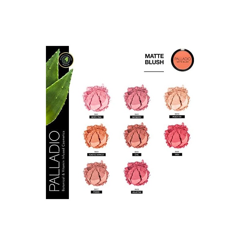 Palladio Matte Blush, se aplica suavemente sobre las mejillas, apariencia mate suave y acabado uniforme, cobertura aterciopelada impecable,...
