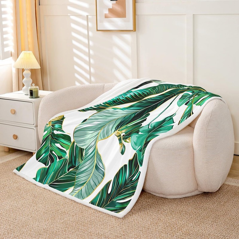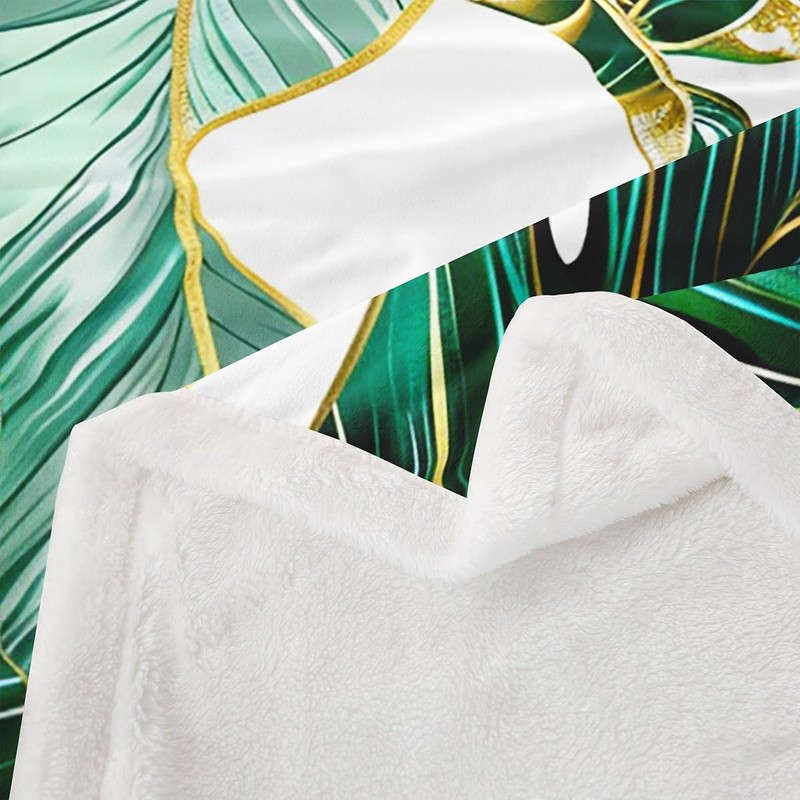 Palm Leaf Fuzzy Blanket Tropical Leaves Sherpa Blanket for Sofa Bed Couch Palm Tree Print Fleece Throw Blanket Green Botanical Fuzzy Blanket Room Decor Plush Blanket Baby 30"x40"