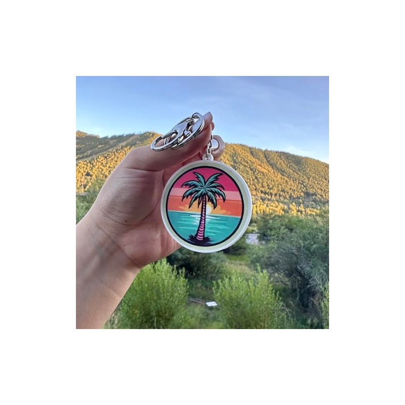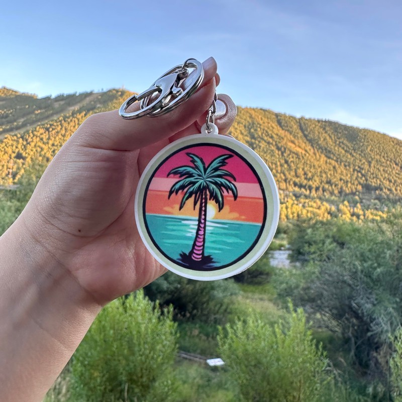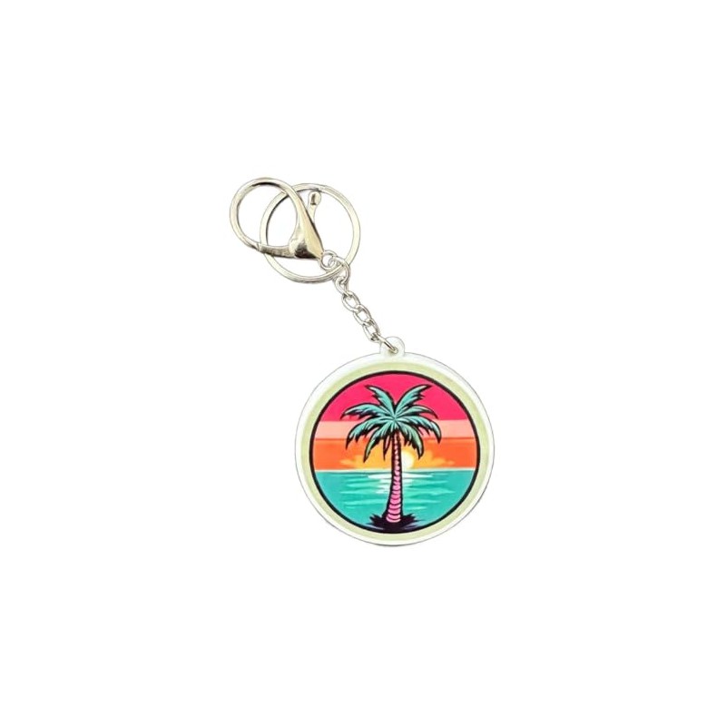Palm Tree Keychain - Lobster Clasp Sunset Surfing Beach | 2.5" Size