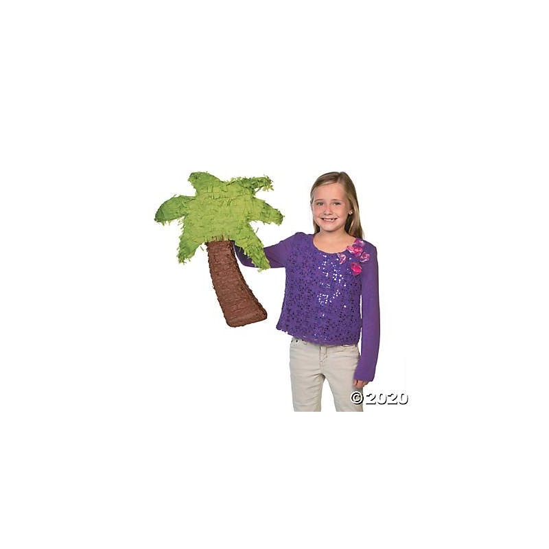 Palm Tree Piñata. Let the party begin! For a fun tropical decoration at your beach-theme get together, simply fill this papier-mâché piñata with your favorite candy, toys and treats. Includes hanger. Piñata stick, toy & candy assortment sold separately. 18 1/2" x 19"