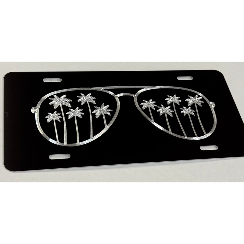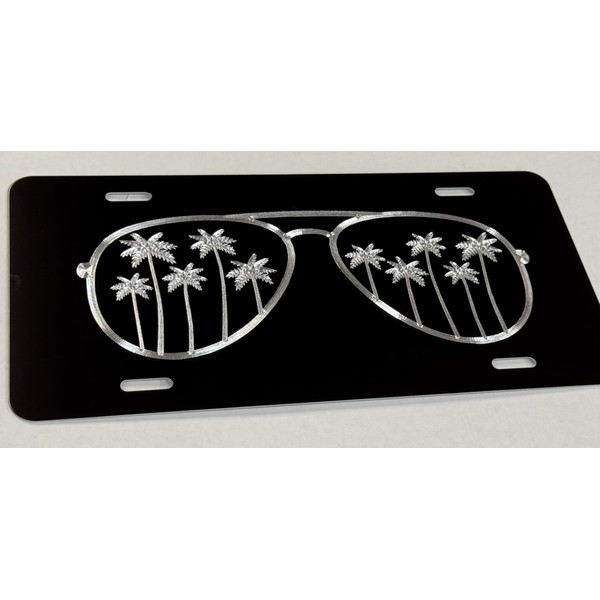 Palm Tree Sunglasses Car Tag Diamond Etched Vanity Front Aluminum License Plate