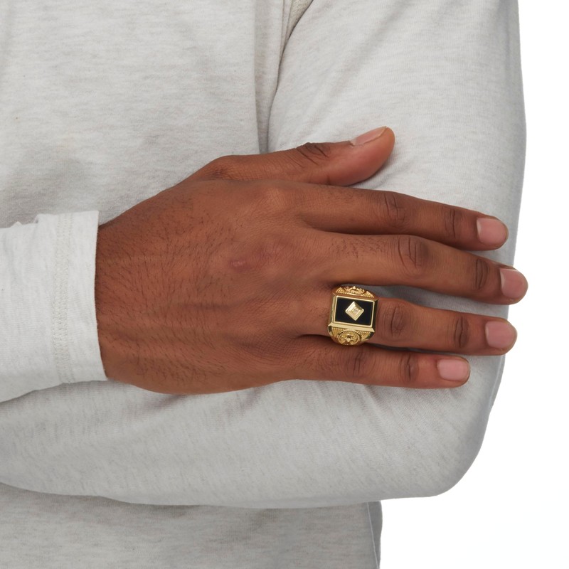 PalmBeach Men's Yellow Gold-Plated Emerald Cut Natural Black Onyx and Diamond Accent Cross Ring Sizes 8-13 Size 9