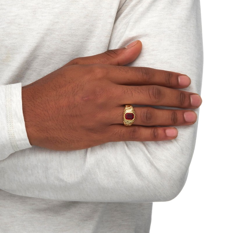 PalmBeach Men's Yellow Gold-Plated Emerald Cut Simulated Red Ruby Nugget Style Ring Sizes 8-16, Metal, Ruby