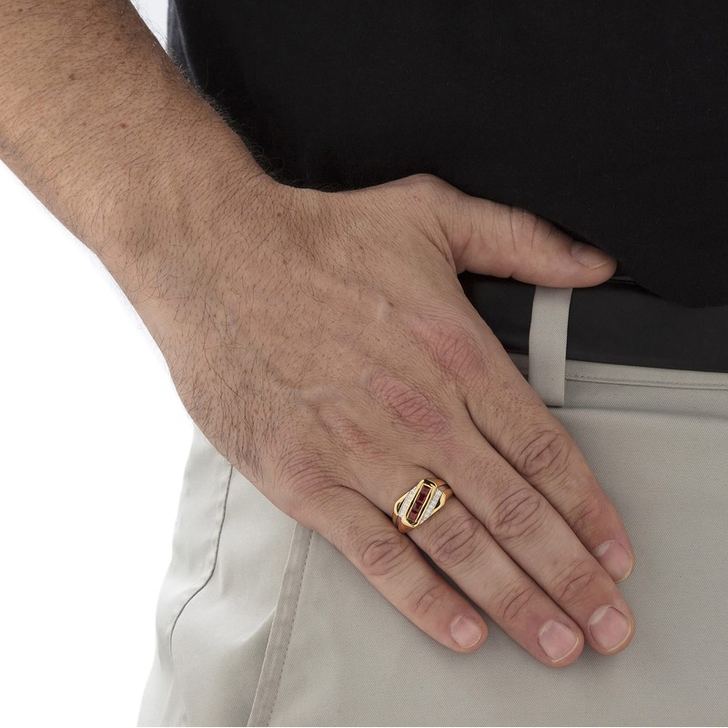 PalmBeach Men's Yellow Gold-plated Sterling Silver Square Genuine Red Garnet and Diamond Accent Diagonal Ring Sizes 8-13 Size 12