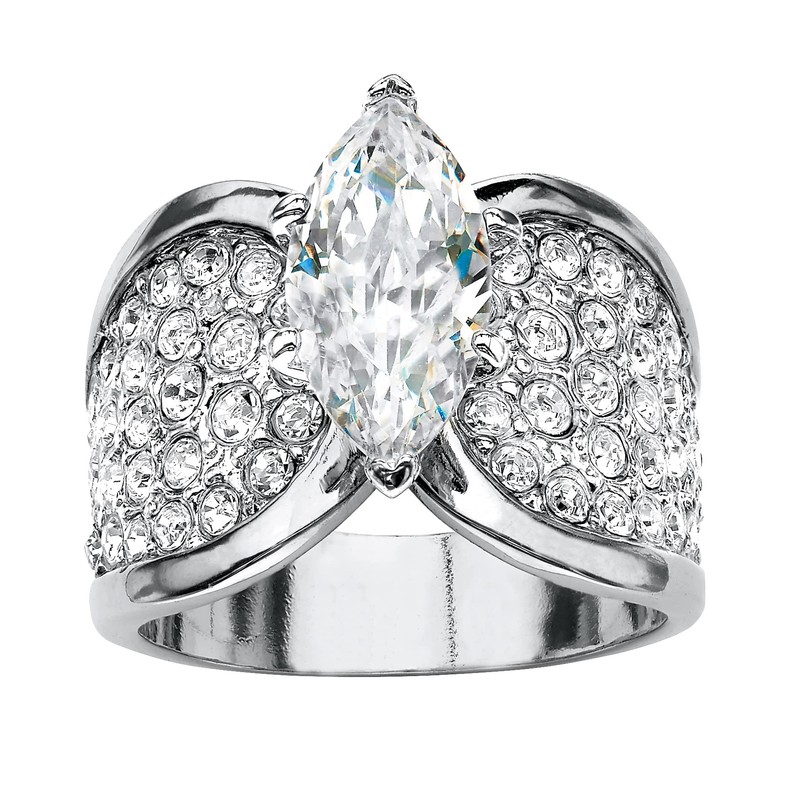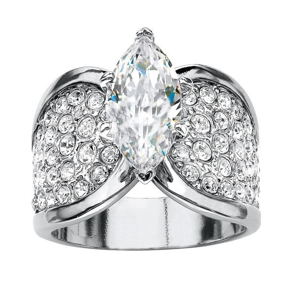 PalmBeach Platinum-Plated Marquise Cut Cubic Zirconia and Round Simulated Crystals Engagement Ring Sizes 7-12 Size 7
