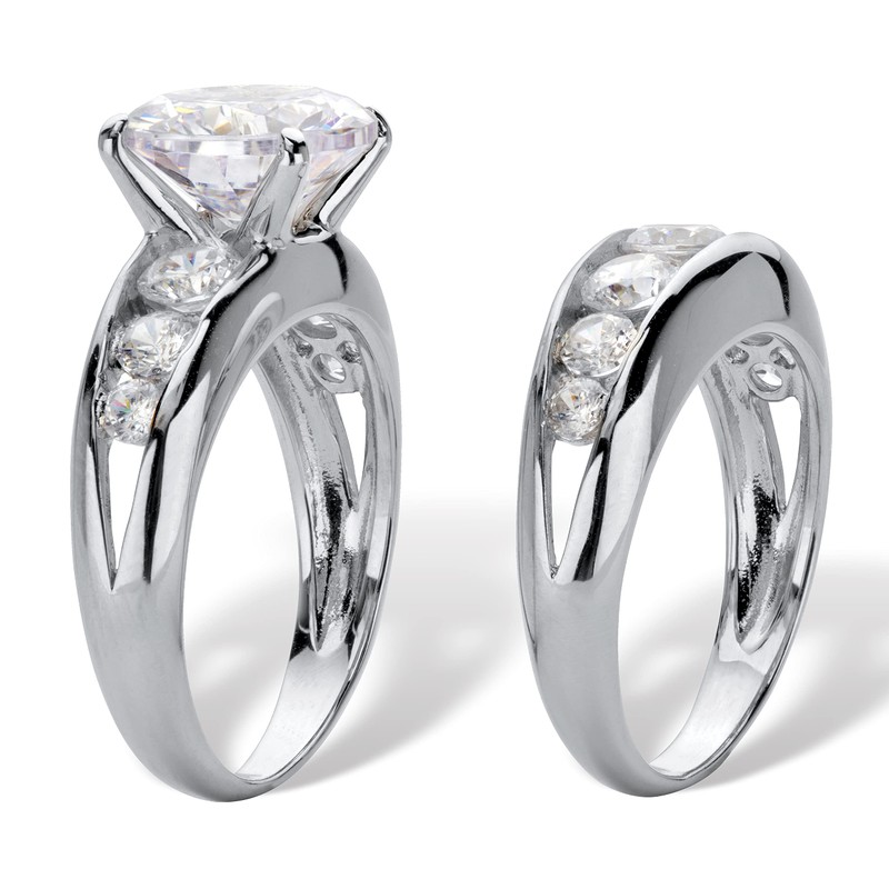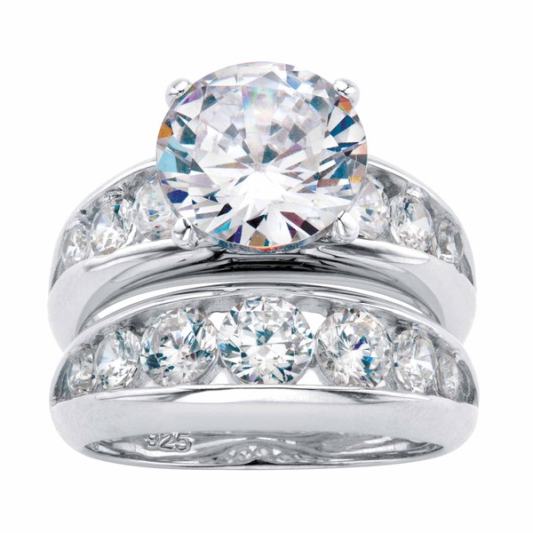 PalmBeach Sterling Silver Round Cubic Zirconia Bridal Ring Set Sizes 5-10 Size 8