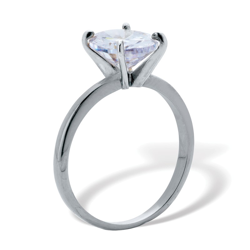 Classic symbol of everlasting love. This engagement ring impresses with a round 2.00 carats or oval 2.54 carats cubic zirconia. Beautiful simplicity for your special day. 18k gold-plated, platinum-plated or silvertone. - 650077