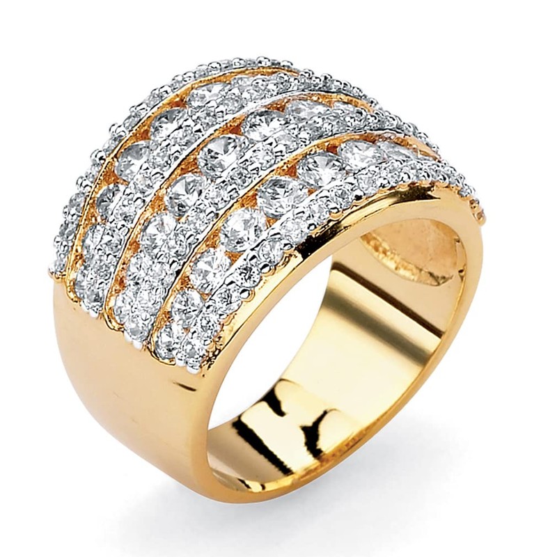 PalmBeach Yellow Gold-Plated Round Cubic Zirconia Multi Row Dome Ring Sizes 6-10 Size 9