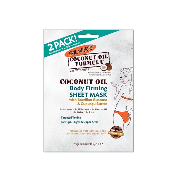 - Firming Sheet Mask: Palmer's Coconut Oil Formula Body Firming Sheet Mask delivers targeted toning ingredients to problem areas such as thighs, hips, stomach, upper arms or buttocks in a concentrated sheet mask