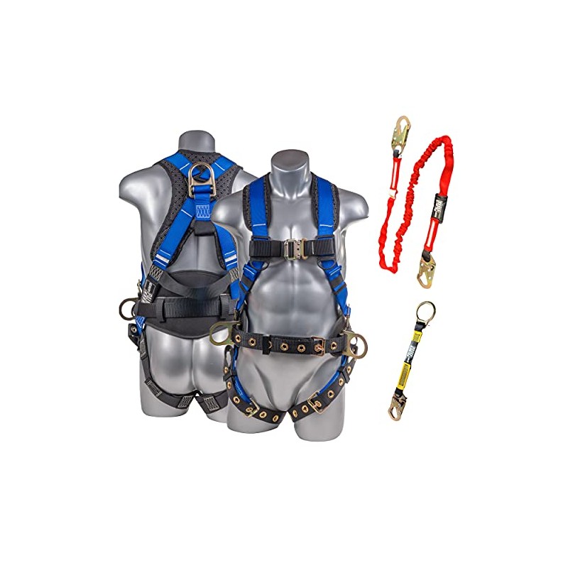 - RELIABLY DURABLE - We provide fall protection gear that is built to last and can keep you out of harm’s way. The body harness is build with these physical parameters: Webbing: Polyester, Width: 1.73 in, Breaking Strength: 5000 lbs., Stitching Thread: High-tenacity polyester Metal Component: Alloy Steel, Finish: Silver or Golden Yellow Galvanized Weight: 7.28 lbs.