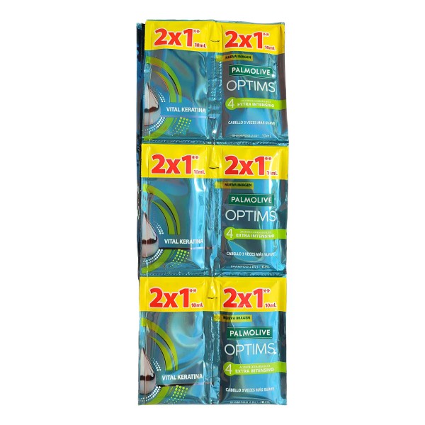 540 piezas de Shampoo Palmolive Optims en sobrecitos.