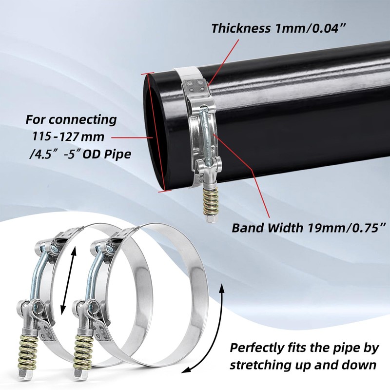 PALOZO - Abrazaderas de manguera de tornillo en T de 5 pulgadas, abrazadera de manguera de acero inoxidable con resorte de refuerzo para tubo de 5 pulgadas de diámetro, abrazadera de intercooler de