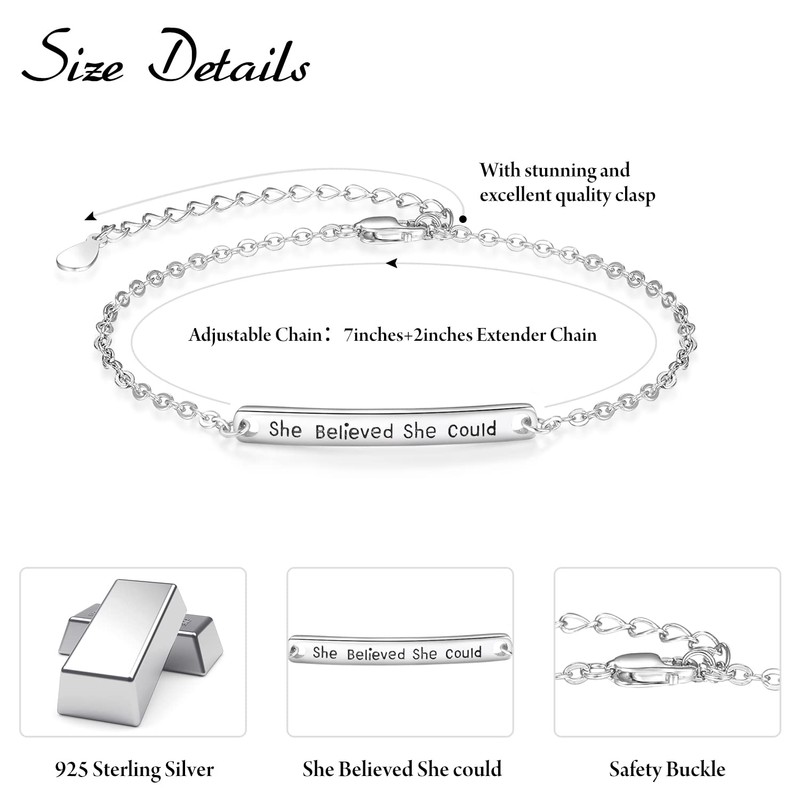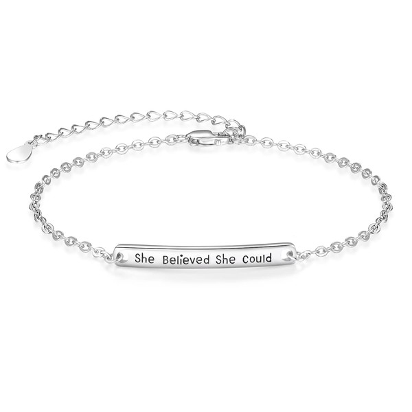 Palpitate Inspirational Gift She Believed She Could 925 Sterling Silver Bracelet Inspirational Faith Believed Jewelry Gift Birthday for Women Girls, Sterling Silver , no gemstone