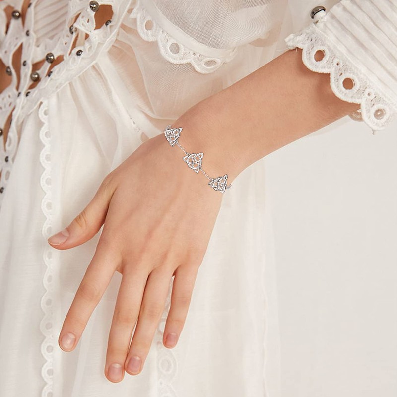 - 【BEAUTIFUL YEARNING】Family affection, friendship, and love make our lives full of sunshine and hope. Trinity knot bracelets perfectly interprets this dynamic cycle of joy intertwined.Sterling Silver Triquetra Celtic Knot Bracelets for Women.