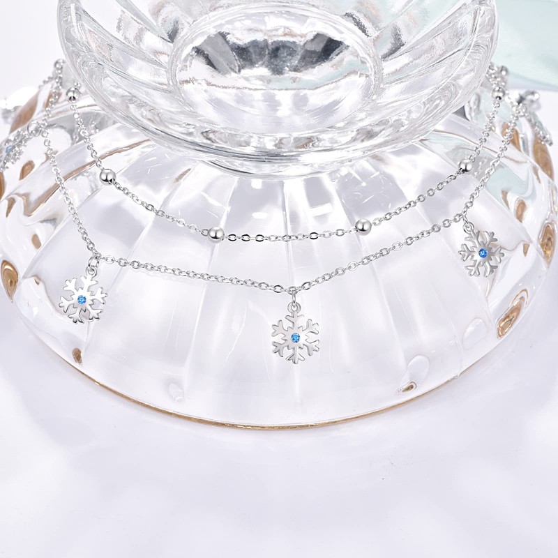 Palpitate Snowflake Anklet Bracelets for Women 925 Sterling Silver Snowflake Jewelry Gifts Christmas Birthday