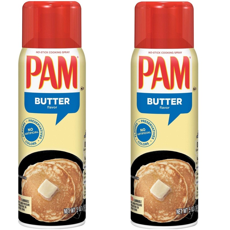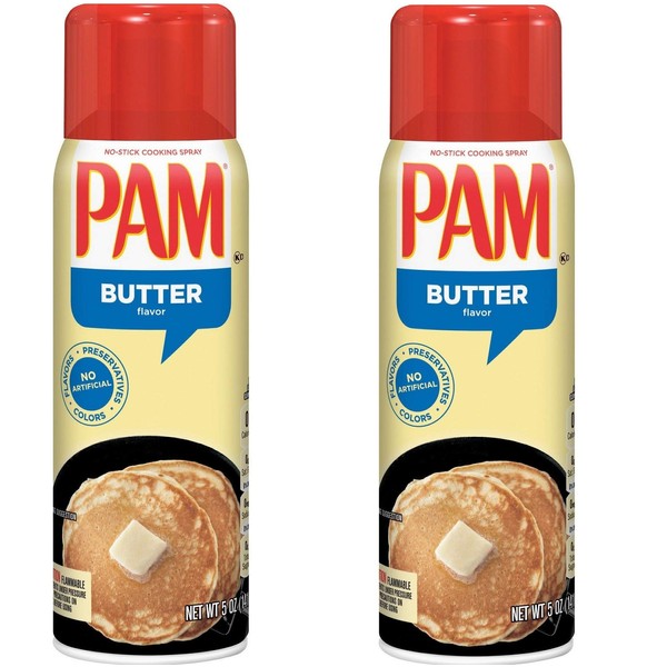- 2 Bottles of PAM Butter Cooking Spray - A Great Way to Add Butter Flavor without the Animal Fat or Margarine