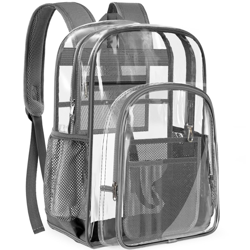 PAMANO Clear Backpack Transparent Heavy Duty See Through Bag for College Work Travel Security, Gray