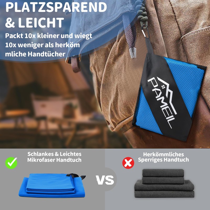 Pameil Microfibre Towel Set of 3 - 160 x 80 cm Large Bath Towel + 2 Pieces 80 x 40 cm Small Towel - Microfibre Towels for Backpackers, Travel Towel Quick-Drying Perfect for Fitness (Blue)