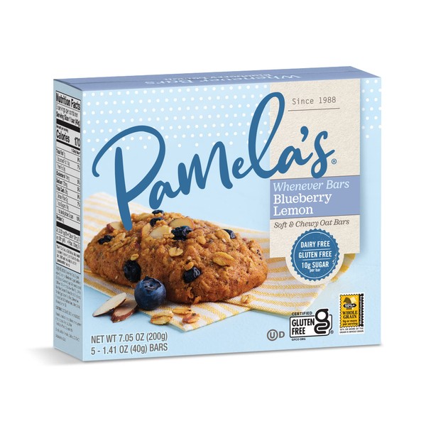 Pamela's Whenever Bars Soft & Chewy Oat Bars, Blueberry Lemon, Kosher, Gluten Free, 5 Count, 7.05 Ounce (Pack of 6)