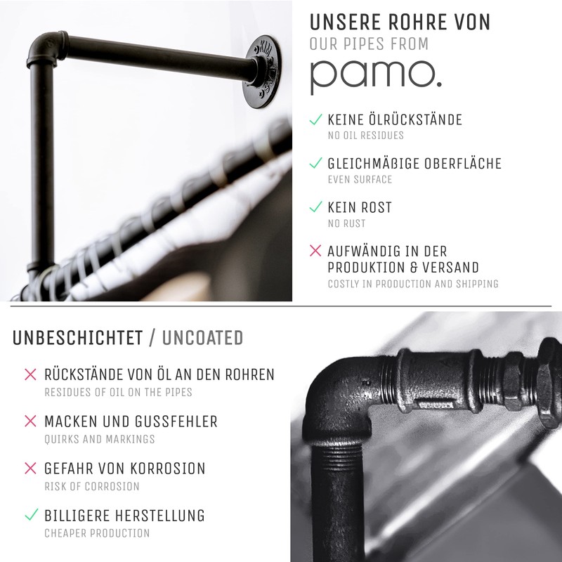 - ✔️ Easy - Since we use 3/4 inch thread for our individual parts, you can easily assemble your wish from our range - thanks to the powder coating, the pipe is resistant to rust