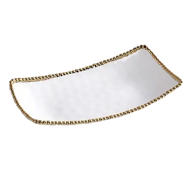 Pampa Bay Rectangular White and Gold 15 x 8.5 Porcelain Deep Server Dish