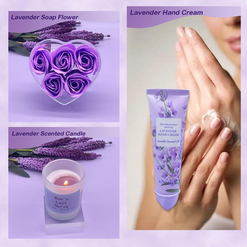 - 🎁[All In One Spa Gift Set For Mother] This care package contains 10 pieces of interesting little things with Lavender fragrance, that will give her a different surprise!✨1*Scented Candle; 1* Essential Oil; 1* Lavender Sachet; 2*Bath Bomb; 1*Handmade Soap; 1* Hand cream;1* Heart-shaped Soap Flower; 1* Greeting Card 1* Exquisite gift box✨All the items are in matching Lavender color, making the whole set vert complete and thoughtful. A must for self care and bath time!