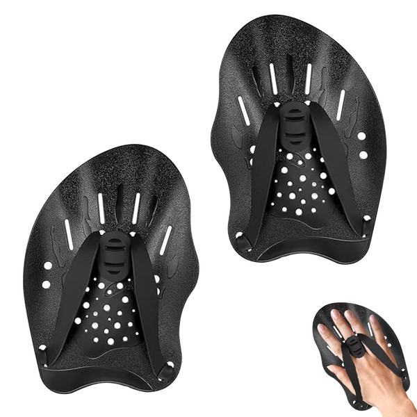 Pamtns 1 Pair Hand Paddles Swimming Unisex Adult Swimming Training Device Swimming Paddle Hand Paddle Training Tool Adjustable Swimming Paddle Forearm Swimming Aid Strength Training Aid Swimming