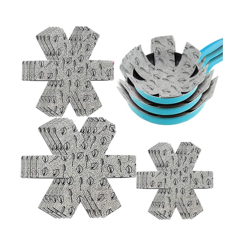 - Easy and effective: place pan protectors between cookware or dishes, keep them apart, prevent scratching of non-stick surfaces, prevent breakage, chipping, scratches and extend the life of your cookware.