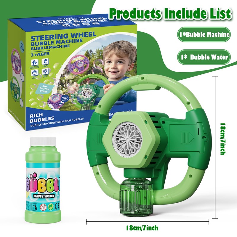 • Vehicle toy and bubble machine: with its unique steering wheel design, it is not only an inspiration for children's driving dreams, but also a fun automatic bubble machine. During the bubble game, it feels like you are on a wonderful driving journey - it awakens children's urge to discover and imagination and makes playing a unique experience.
