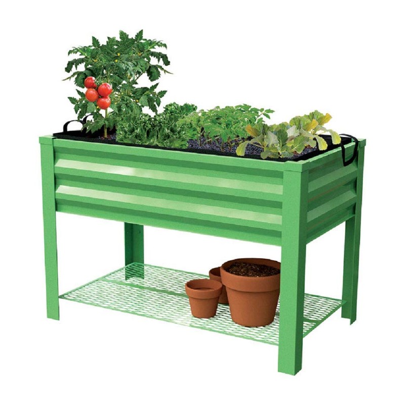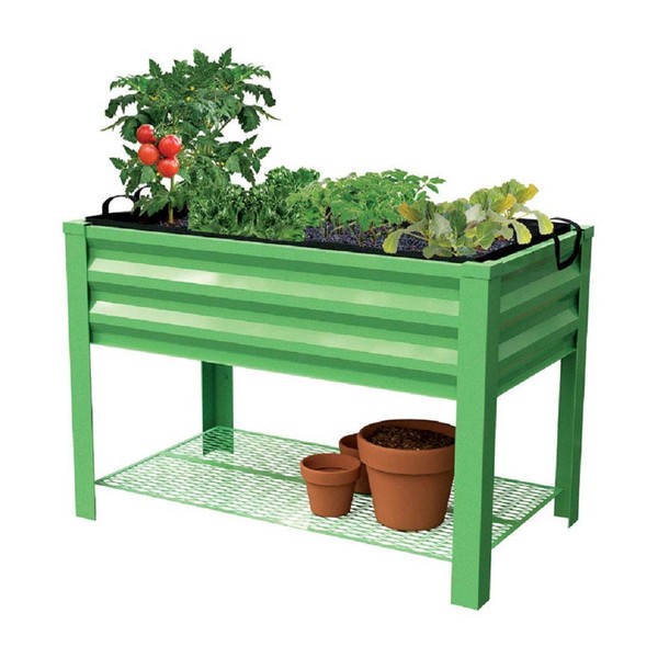 - Steel planter bed with green hue adds planting room to your deck