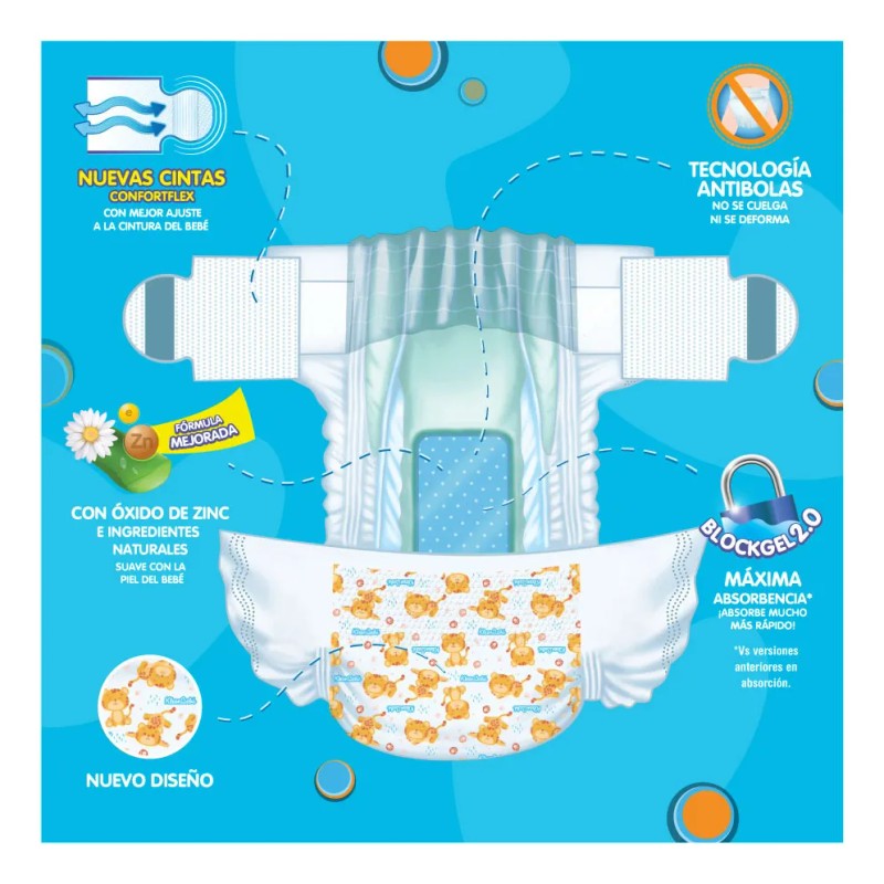 Ofrecen absorción superior para evitar fugas, manteniendo la piel del bebé seca y protegida. Su ajuste cómodo y flexible permite libertad de movimiento y evita irritaciones.