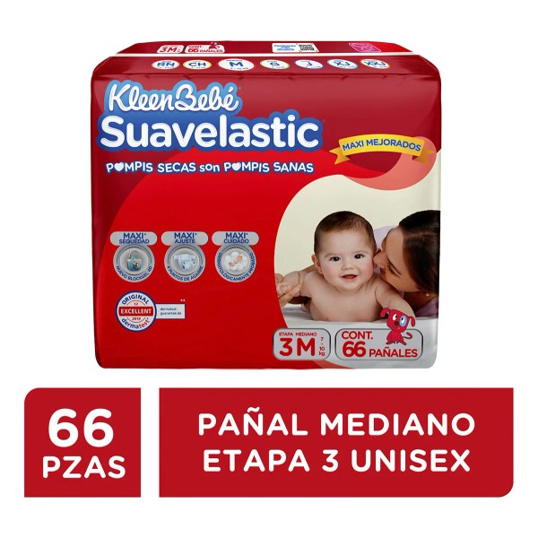 Pañales KleenBebé Suavelastic Etapa 3 Unisex 66 Piezas